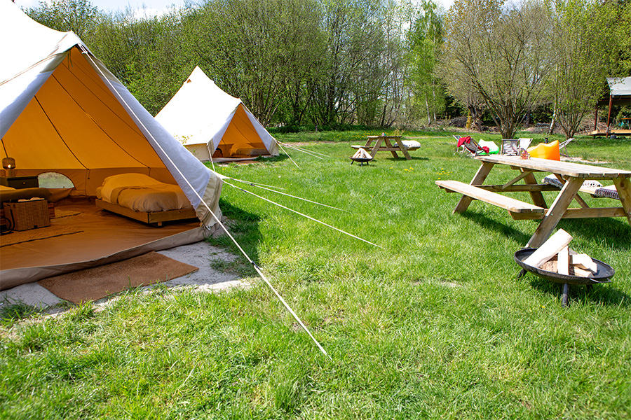 Dieses Luxuszelt bietet das ideale Glamping-Erlebnis für vier Personen.